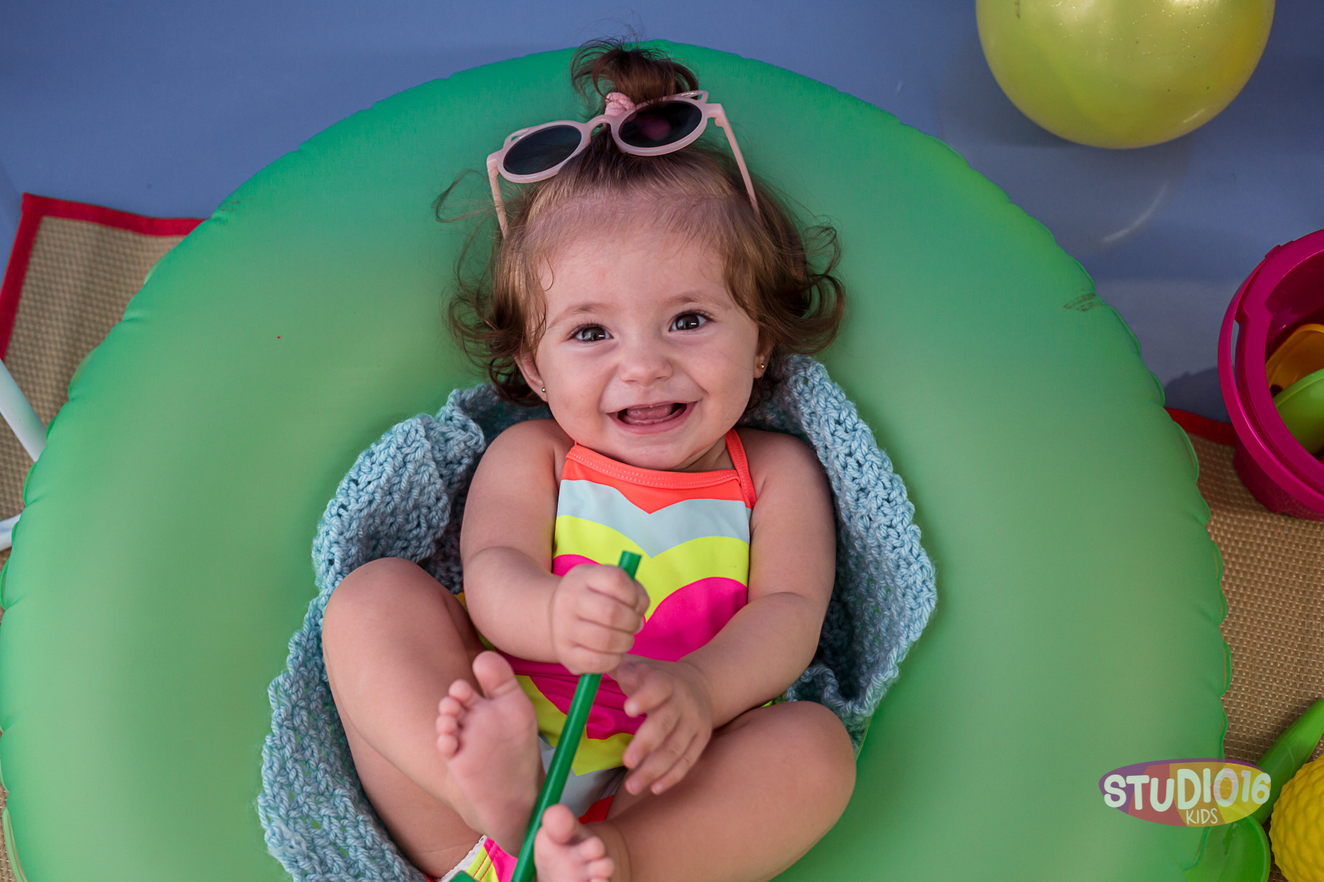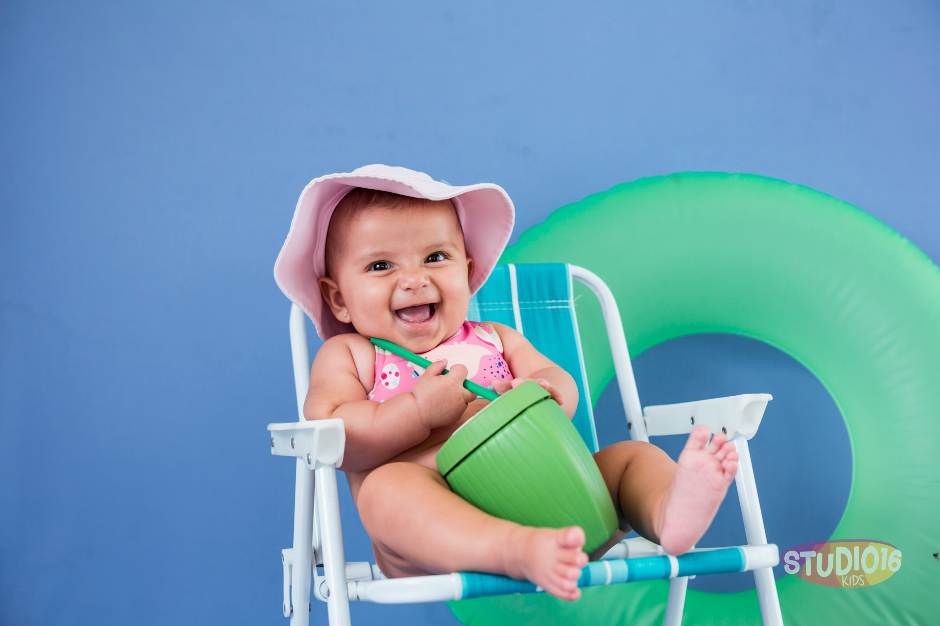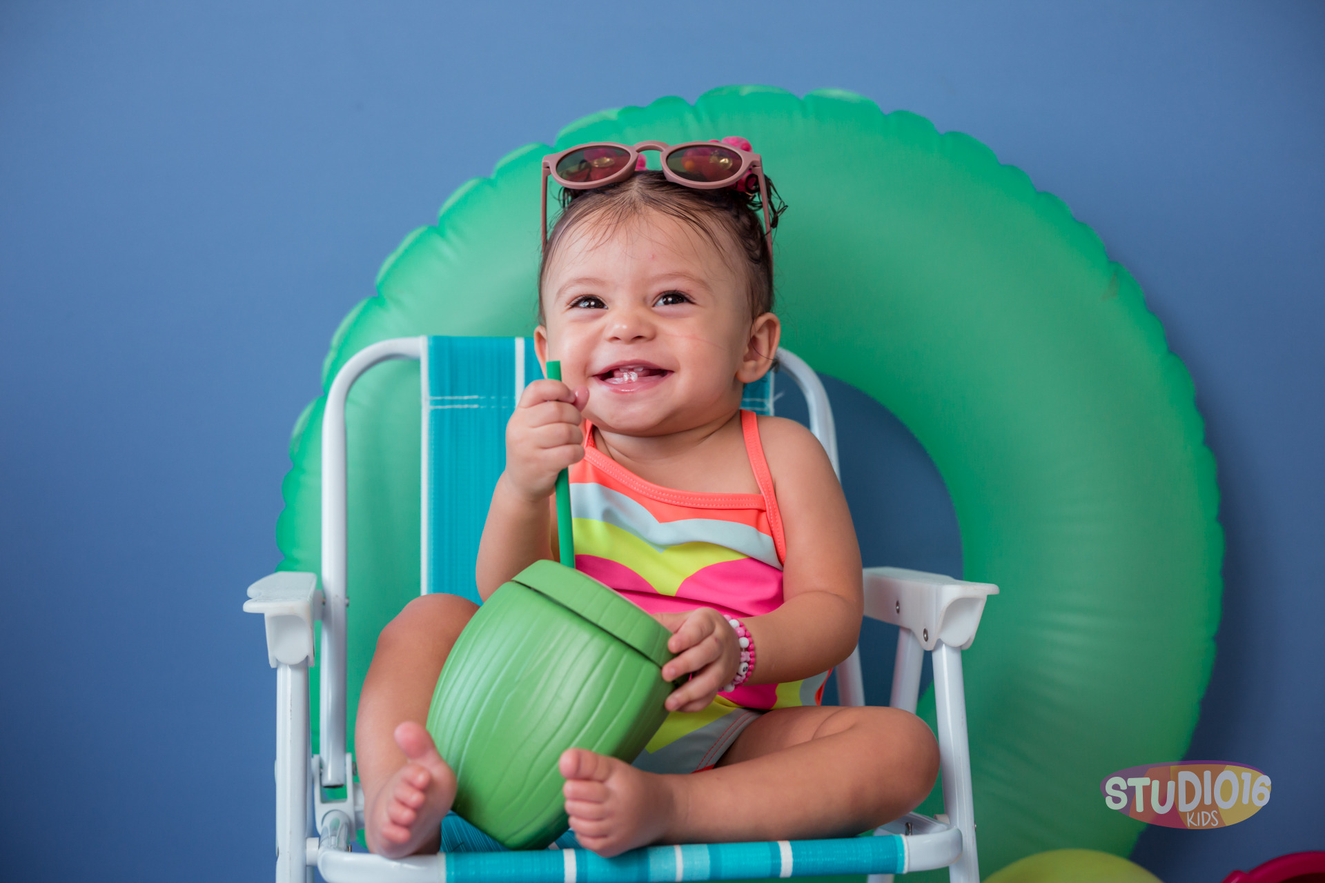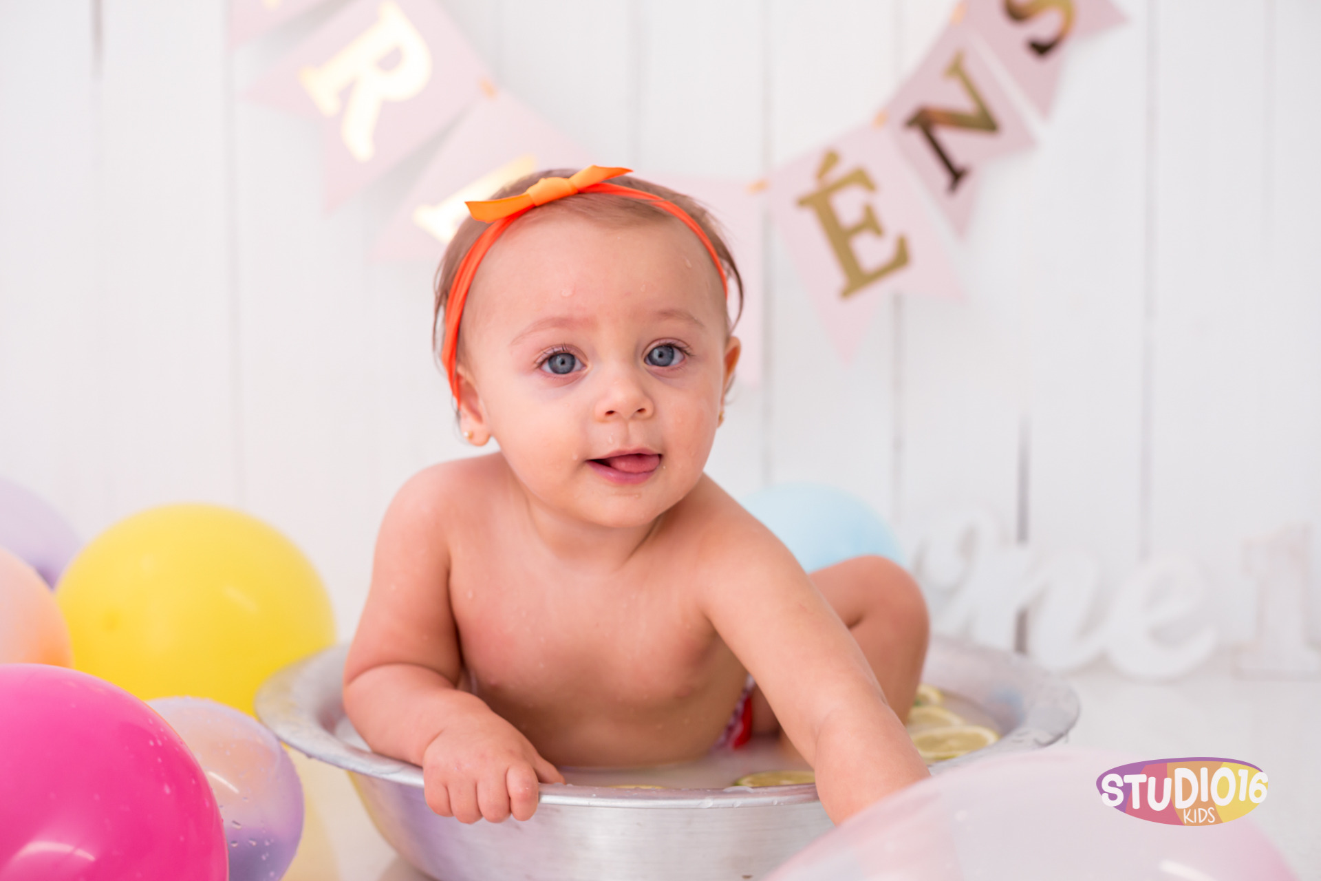 Para tornar a celebração ainda mais especial, oferecemos o momento de splash como uma adição ao ensaio. Após a diversão com o bolo, montamos uma pequena banheira cheia de água morna onde o bebê pode brincar e se refrescar. É uma forma divertida e relaxante de finalizar a festa, e resulta em fotos adoráveis e cheias de alegria.