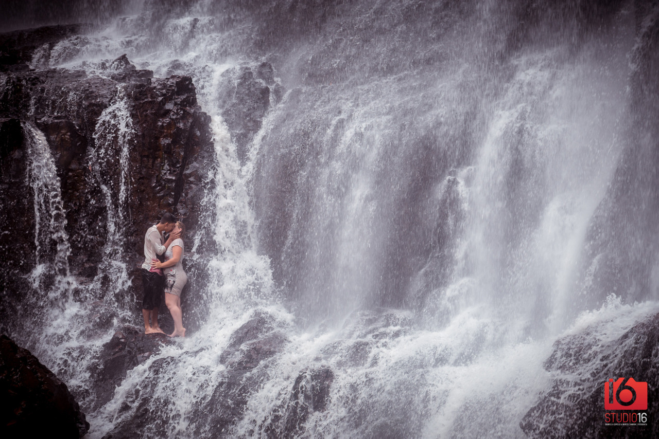 O efeito dentro ou fora de uma cachoeira é impactante. Uma dica é escolher um dia útil para fazer o ensaio, assim você evita de encontrar lugares lotados de gente.