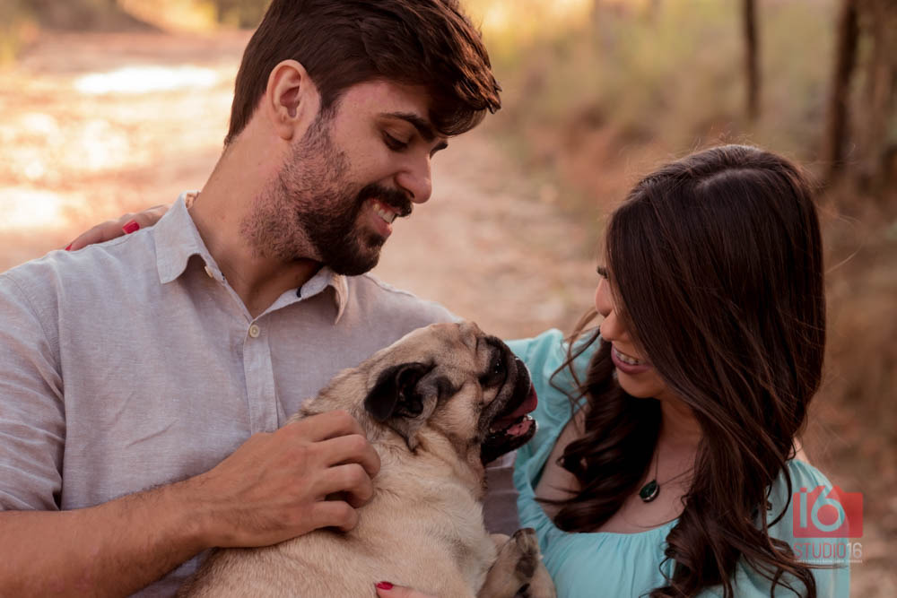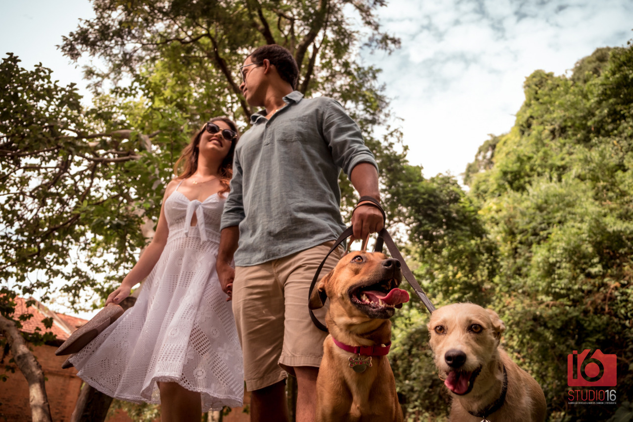 A presença do companheiro peludo deixará a sua sessão muito mais divertida e o resultado serão fotos lindas e muito fofas! Mas lembrem-se de levar alguém para olhar os cachorros nos momentos que os peludos não estarão particapando das fotos.