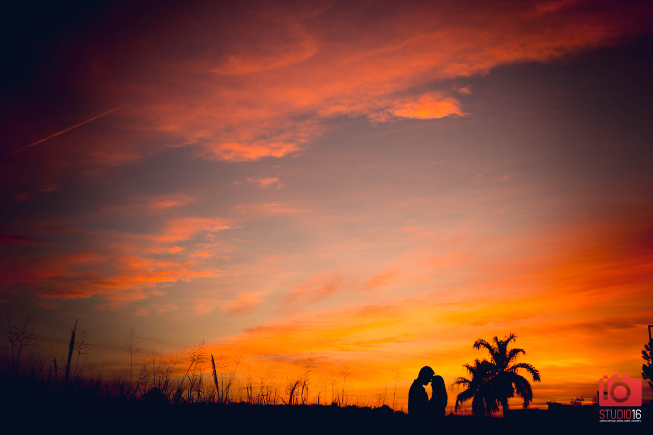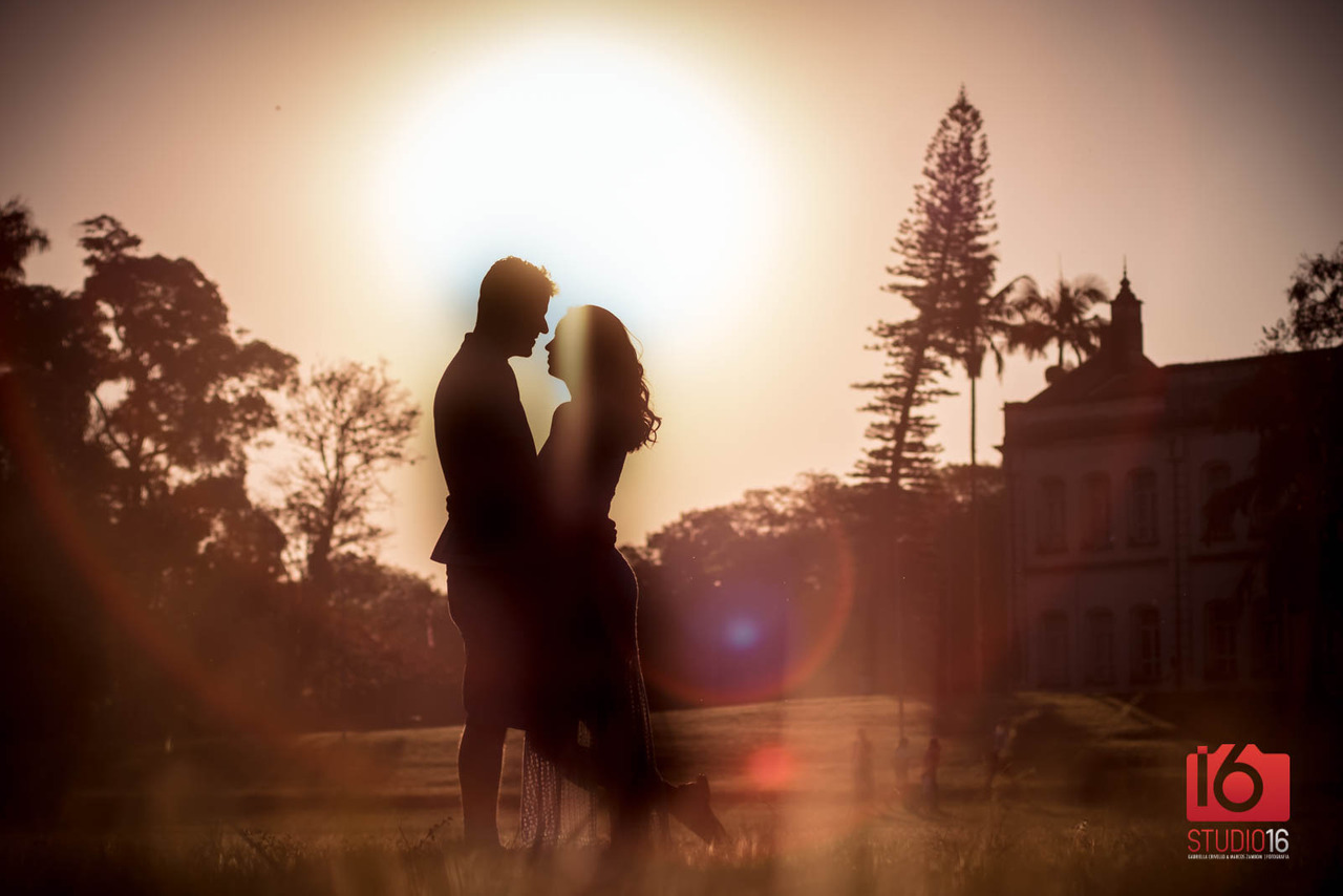 Se o seu pré-wedding for em local aberto, não deixe de combinar um horário com o fotógrafo que inclua o pôr do sol para ter registros incríveis assim.